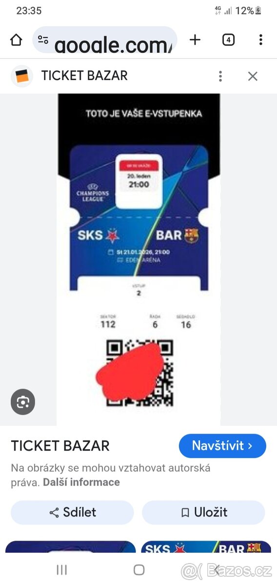 Slávia barcelona vstupenky - [23.12. 2025]Dobrý den prodám 2 lístky na barcelonu v sektoru 128