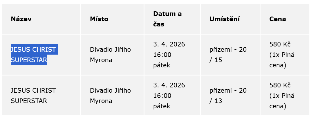 Predám 2x vstupenku na JESUS CHRIST SUPERSTAR
