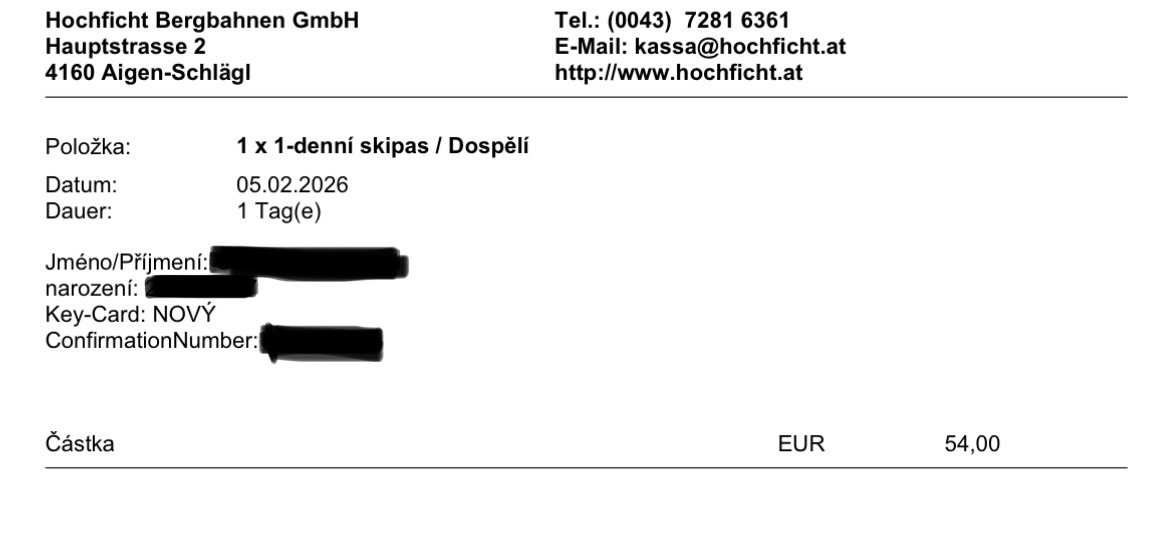 Prodám skipasy na Hochficht na zítra 5.2.