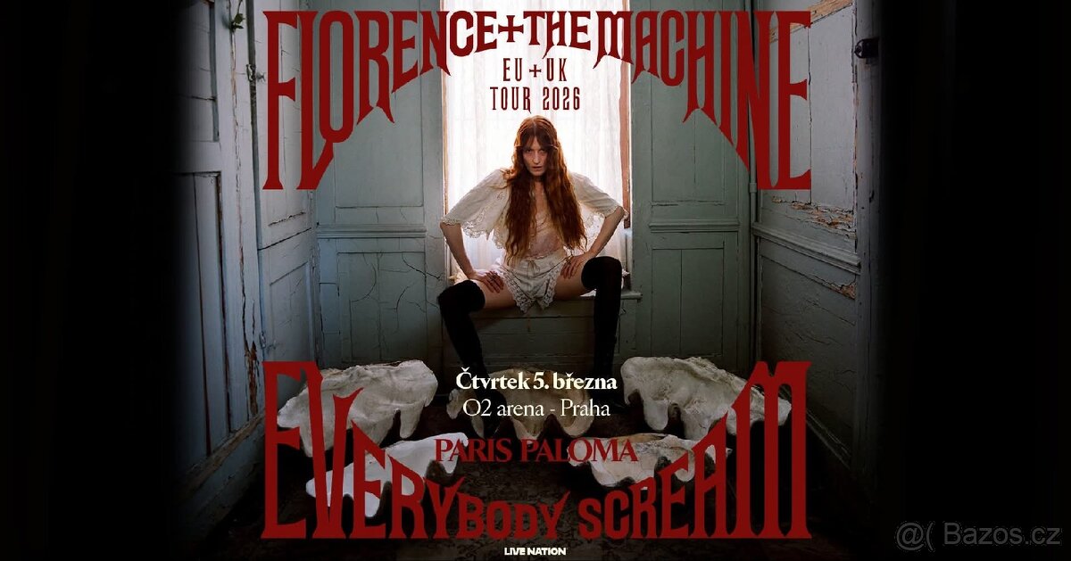 FLORENCE + THE MACHINE O2 ARENA VIP KLUBOVÉ PATRO - [5.2. 2026]Nabízím vstupenky na koncert FLORENCE + THE MACHINE "THE EVERYBODY SCREAM TOUR" dne 5.3.2026 od 20,00, vstup je možný 120 minut předem, po akci je možné ještě cca. 2 hodiny pařit.