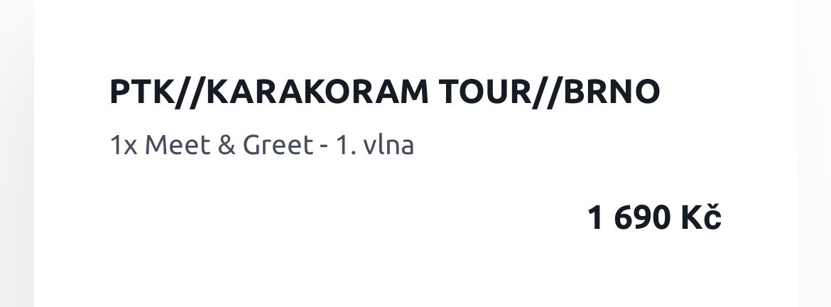 Zdravim, prodavam listek na koncert PTK jedna se o jeho tour karakoram. Nemuzu se ten den tam dostavit. Listky pošlu na email po tom co penize dojdou na ucet