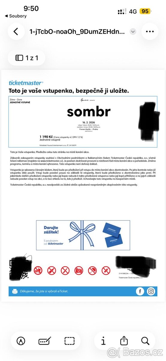 Prodám 4 lístky na Sombra 16.2.2026 v Praze , ze zdravotních důvodu se nezucastnime