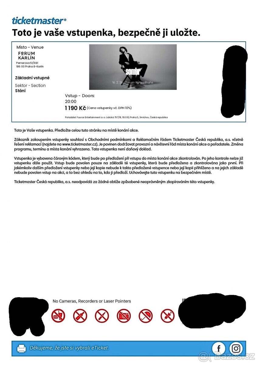 Nabízím 4 lístky na koncert Sombr 16.2.2026. Cena dohodou