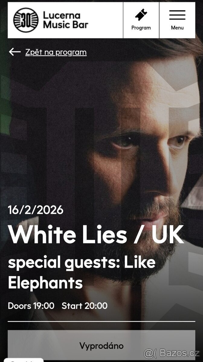 White Lies - Lucerna. 16.2. Prodám 2 vstupenky. Platba až při vstupu...