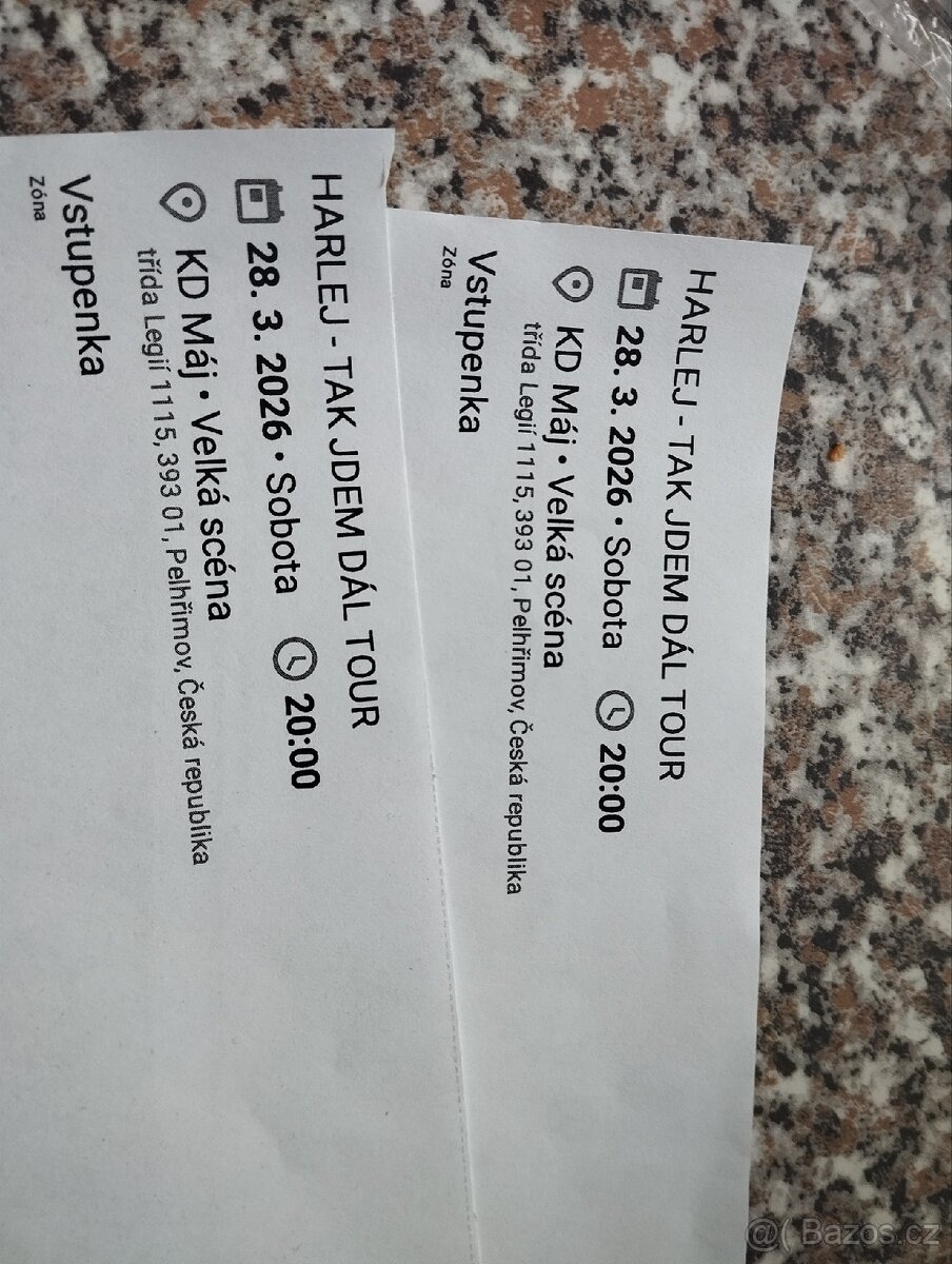 Prodám 2 lístky na Harlej do Pelhřimova