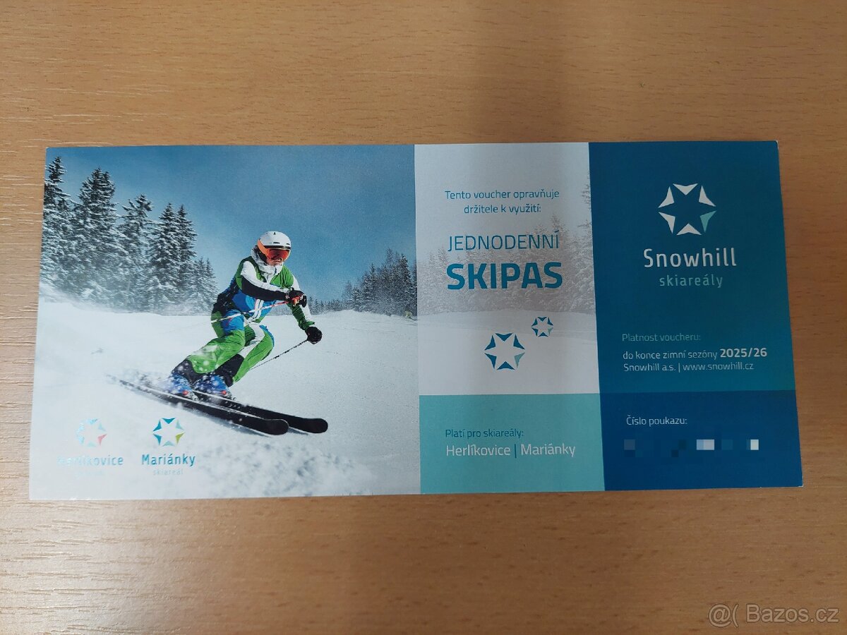Nabízím jednodenní skipas platný pro skiareály Herlíkovice/Mariánky
